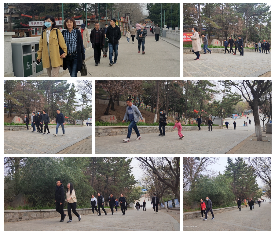 清晨六点钟刚过,就有员工陆续进入南山公园锻炼身体,有的健步如飞,有的挈妇将雏,有的结伴而行,人们舒展身体,拾阶而上。路旁小草青青,枝头春意盎然,一派鸟语花香的气息。